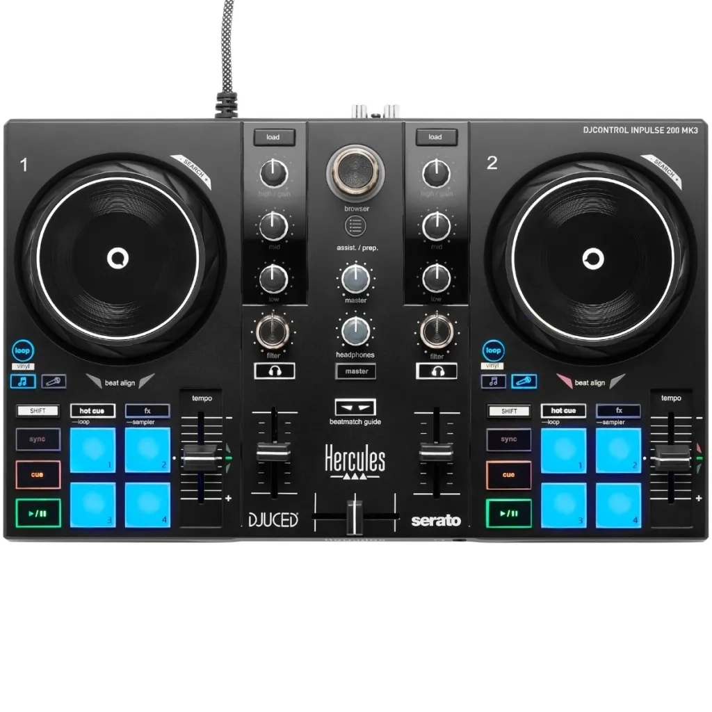 The Hercules DJControl Inpulse 200 MK3 is a compact and beginner-friendly 2-deck DJ controller designed to help you learn real mixing skills from day one. With built-in dynamic light guides for tempo and beat alignment, it makes mastering manual beatmatching intuitive and fun.