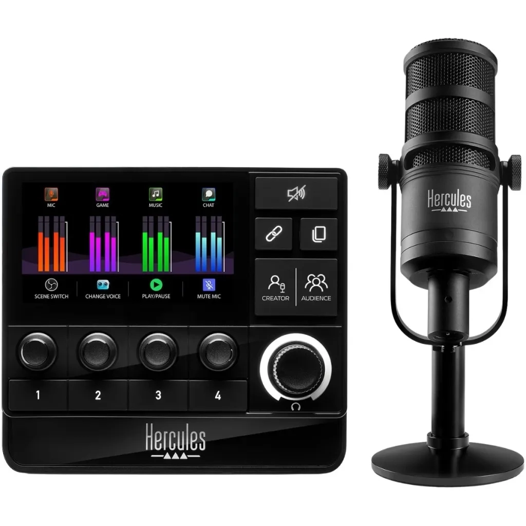 The Hercules Stream Essentials Kit is a complete XLR audio solution for streamers and gamers who demand professional sound quality and total control. Combining the Stream 200 XLR audio controller with the HXD-700 dynamic microphone, this bundle delivers everything needed for high-quality voice and audio management.