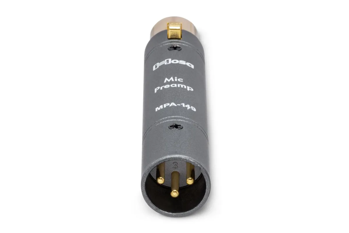 The MPA-149 is an active, in-line mic preamp that provides +26dB of gain to any low-output dynamic, or passive ribbon microphone. The MPA-149 utilizes a discrete Class-A circuit design and selected FET circuitry to offer a clean signal path and low-noise operation. Its compact metal housing is designed to perform reliably in any environment.