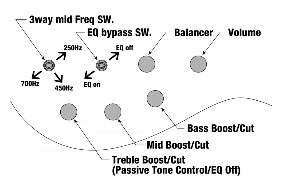 Precision tonal control, including a switch to choose passive-only operation. When the EQ bypasses activated, the treble tone control knob becomes the global tone control for the passive circuit.