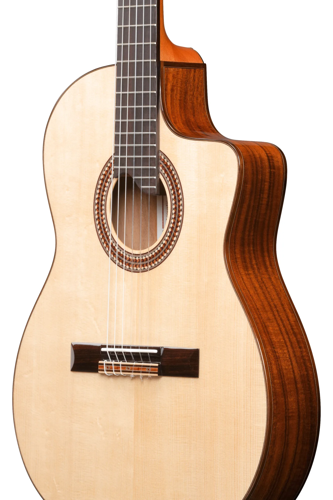 The Okoume neck combined with a rosewood fretboard offers a smooth and natural playing feel. The carefully shaped neck and slightly radiused fingerboard make this instrument suitable for both classical techniques and contemporary styles.