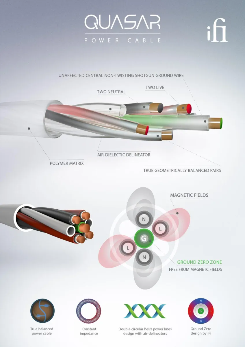 It boasts iFi’s Ground Zero Design to create a central core free of any magnetic field. Combined with the shotgun ground, non-twisting and constant impedance, the Quasar achieves maximum protection from any magnetic field, and has nil induction voltage. This result is vastly reduced system noise.