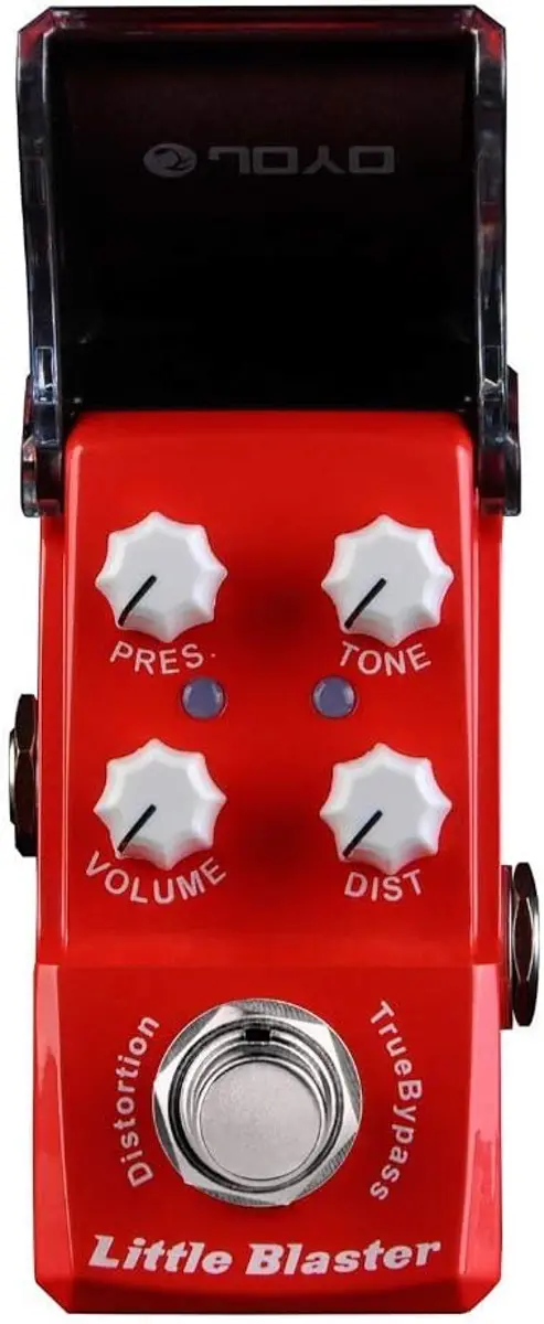 The JOYO JF-303 Little Blaster Ironman mini Distortion guitar effects pedal sounds dirty and mean, but never loses clarity. It cuts through a mix and leaves lots of room for the bass player to do his thing. This little blaster delivers a big distortion in a tiny package.