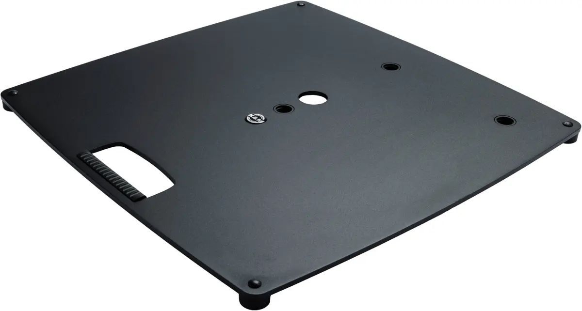 Heavy and solid base plate for all standard distance rods and rod combinations with M20 threaded bolts. Depending on requirements, there are three ways to position the column. In addition to the centric and off-center position, the rod combination can also be mounted in the corner. An ergonomic carrying handle, a cable management and four sturdy rubber feet are further useful features. The dimensions are 550 x 550 mm, with a weight of 13.5 kg.