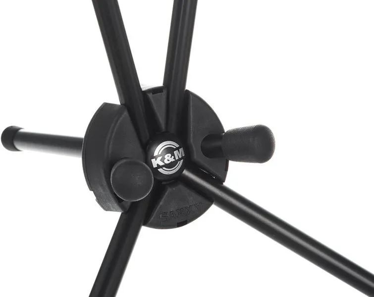 The new, extremely compact saxophone stand "Saxxy" provides support for Eb alto saxophones. The highlight: The collapsed stand can be stored and transported in the supplied velours bag, placed in the saxophones bell.