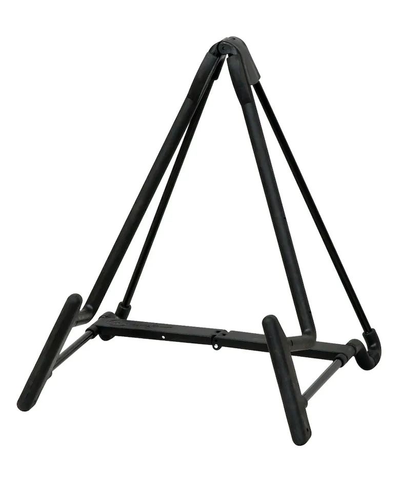 The completely revised world-renowned classic stand is presented in a new look. The instrument is particularly well cared for thanks to the elaborate new rubber structure. With the new innovative adjustable cross bar, guitars of different sizes or even other instruments such as a cello or French horn can be placed on the stand. For storage and transport the stand folds flat. In addition, we provide a practical transport lock. An additional feature includes integrated guitar pick holders. Heli 2 is available in black, red, blue and cork.