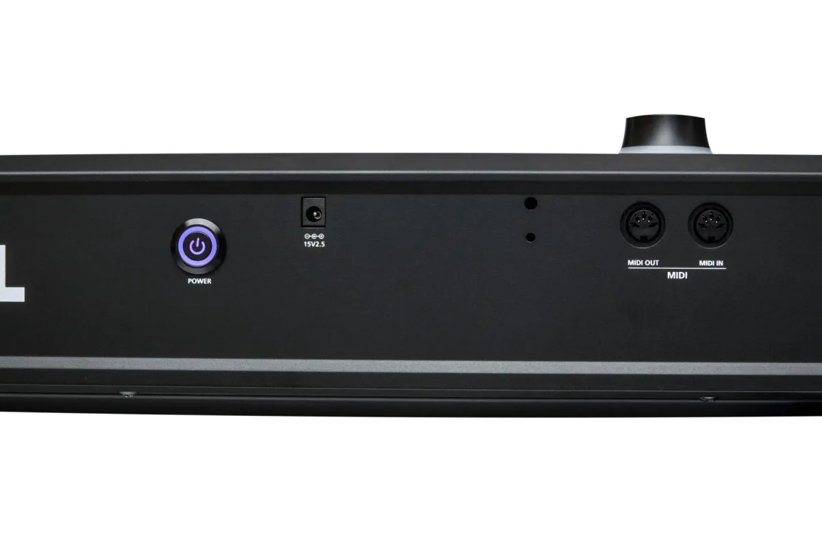 Controllers: 1 Pitch/Mod Joystick, 8 Knobs, 8 Buttons, 2 Transpose switches, 2 Switch pedal inputs; supports a single half-damper pedal (1 switch/sustain pedal is included; half-damper pedals sold separately), 1 Continuous Control Pedal Input (pedal sold separately)