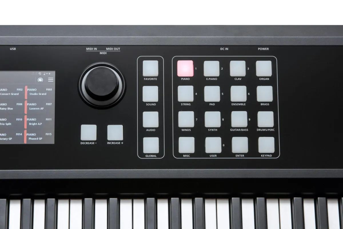 Keyboard: 88-note, fully-weighted hammer-action with velocity sensitive keys (Fatar TP/110)