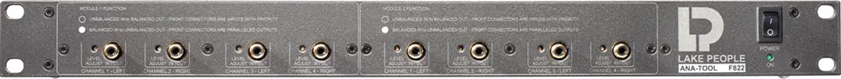 The Lake People ANA-TOOL F822 is a dual stereo line converter designed to bridge the gap between professional and consumer audio equipment. Whether you need to adapt levels between different gear, reduce noise, or ensure optimal gain staging, the F822 provides a transparent and distortion-free conversion.