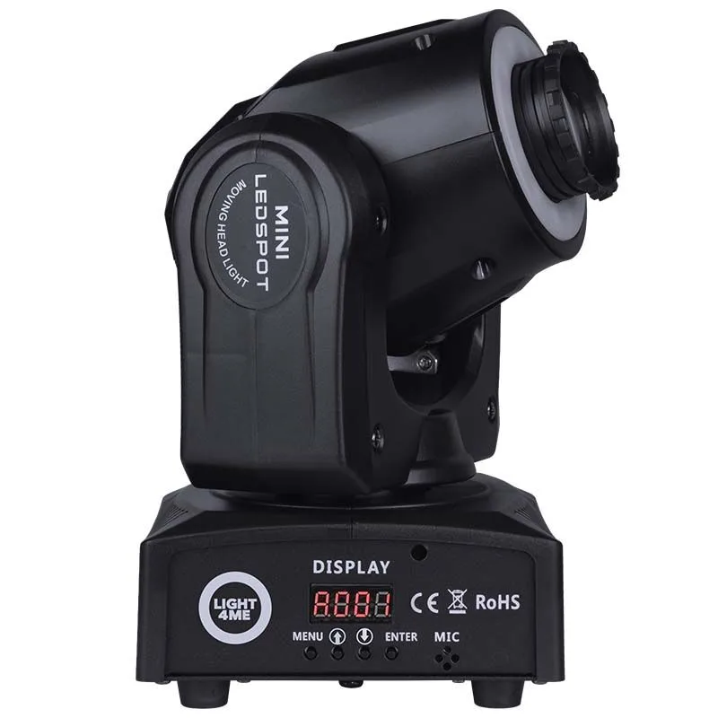 The Light4Me 30 Spot Ring is a small, lightweight, and portable LED moving head that offers a wide range of creative lighting possibilities. It is equipped with a powerful 30W white LED that produces a sharp spot beam, as well as a light ring with 12 RGB LEDs around the main lens for additional visual effects. Perfect for smaller stages, DJ setups, clubs, and various types of events.