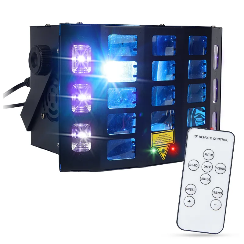 Light source: 2x15W RGBW LED + 6x6W UV+W LED + red laser (120mW) + green laser (30mW)
