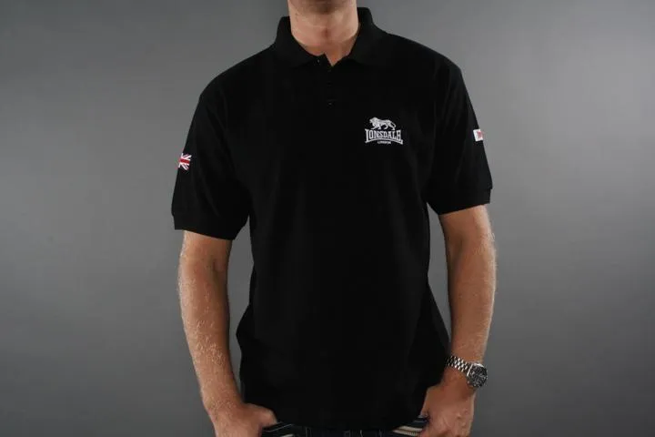 Stretchy polo-shirt for men, Slim fit, 100% cotton, Big lion and logo print on the back, Lion and logo stitching on chest, Regualr size. Men's, black, large.