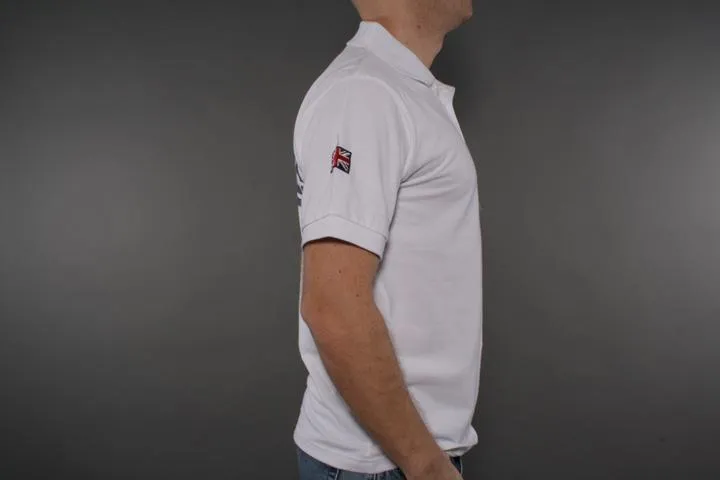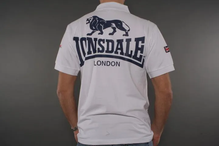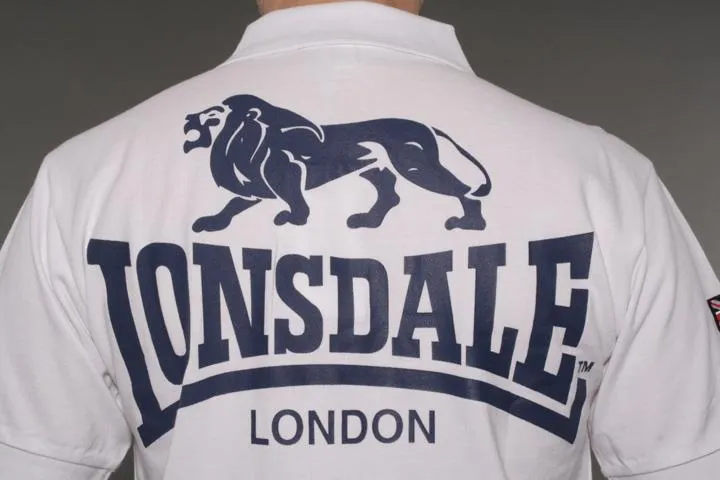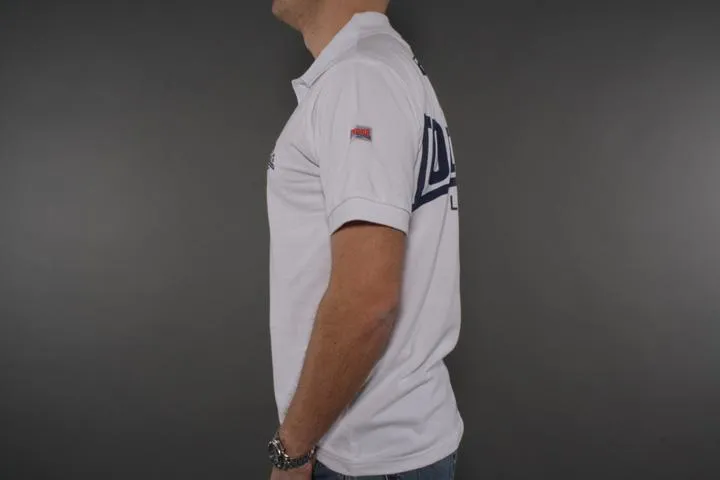 Stretchy polo-shirt for men, Slim fit, 100% cotton, Big lion and logo print on the back, Lion and logo stitching on chest, Regualr size. Men's, white, small.