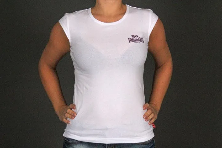 Summer t-shirt for ladies, 95% cotton 5% elastane, Soft, super stretchy, Small lion and logo print on chest, Big lion and logo print on back, Prints are soft to the touch. Women's, white, medium.