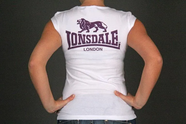 Summer t-shirt for ladies, 95% cotton 5% elastane, Soft, super stretchy, Small lion and logo print on chest, Big lion and logo print on back, Prints are soft to the touch. Women's, white, small.