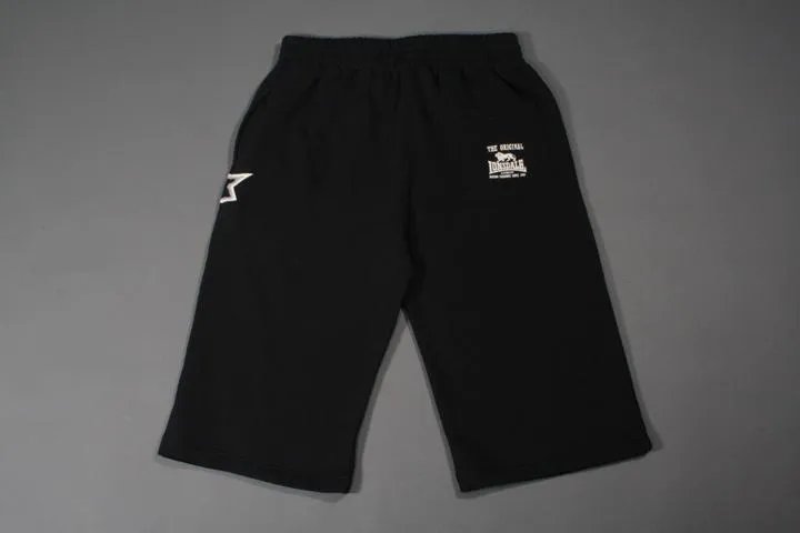 Training shorts with print on legs and on the back pocket (plastisol print). Material: Fleece, 80% cotton/20% polyester. Men, black, XXL.