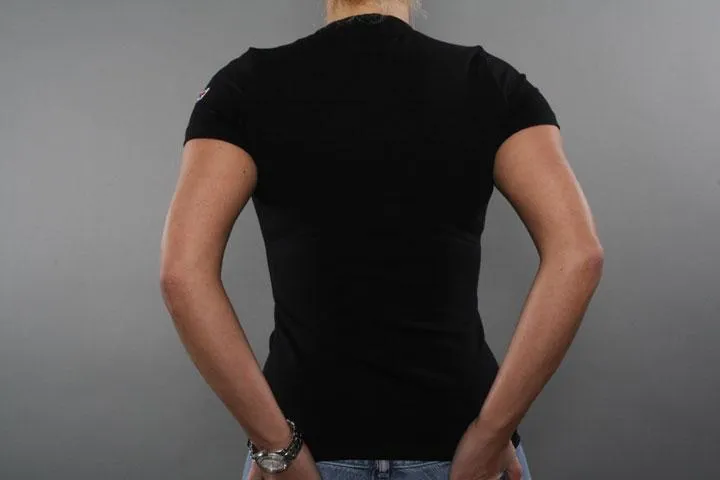 Short sleeve t-shirt with large print on the chest. Ladies, black, medium (38)