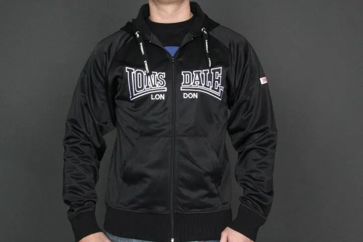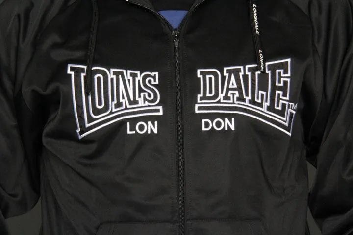 Zip up with hood, large Lonsdale logo embroidered on chest. 100% polyester. Men, XL, Black.