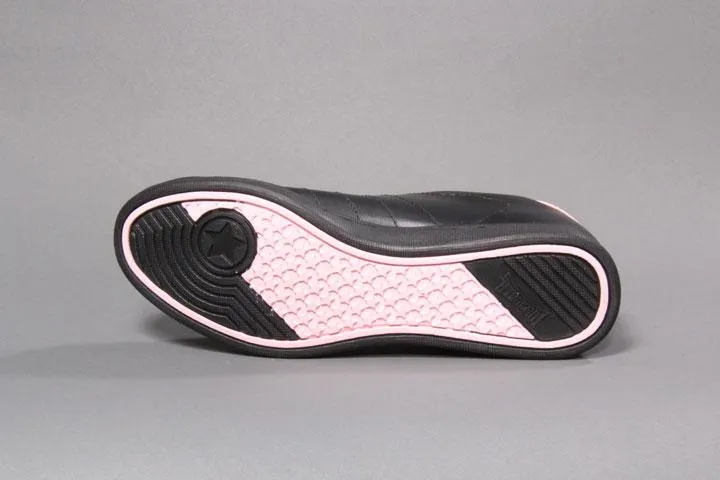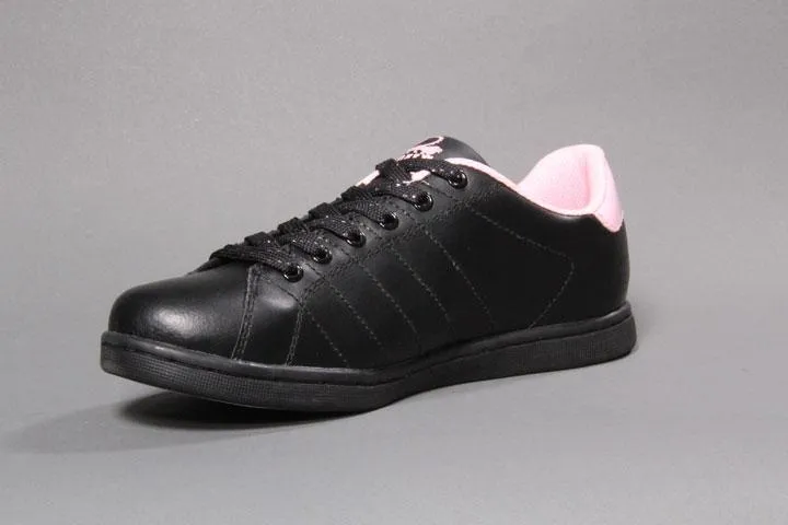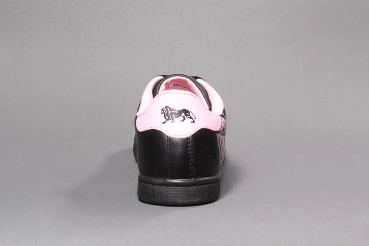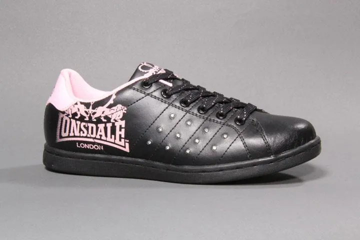 Black girls shoes with laces from Lonsdale. Pink heel and pink logo on the side. Crystals on the side of the shoes. Women, black/pink, size 38 pair.