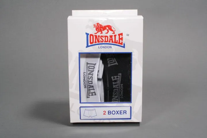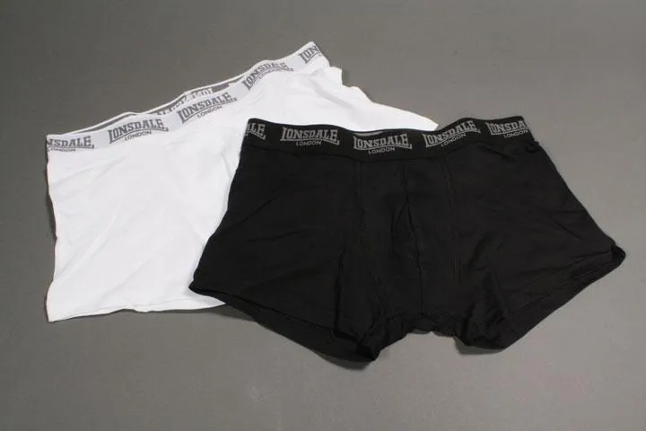 Double pack of Lonsdale boxer shorts. One pair black and one pair white. Elasticated waist. Men's, XL.