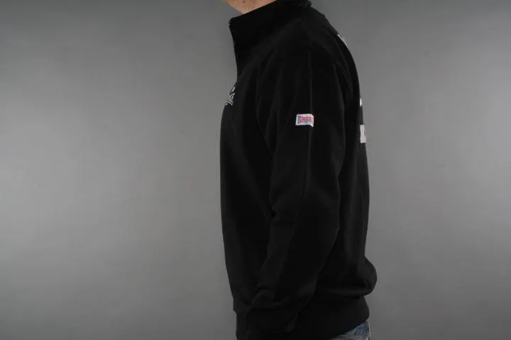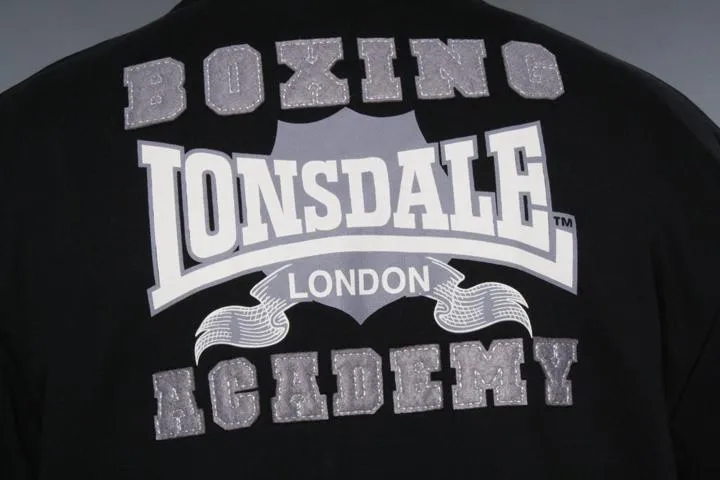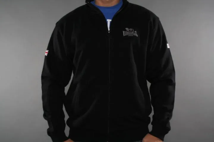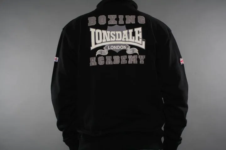 Slim fit zip up with embroidery on the chest and boxing club print and application on the back. Lonsdale application on one sleeve and union jacket on the other. 100% cotton. Men, black, Small.