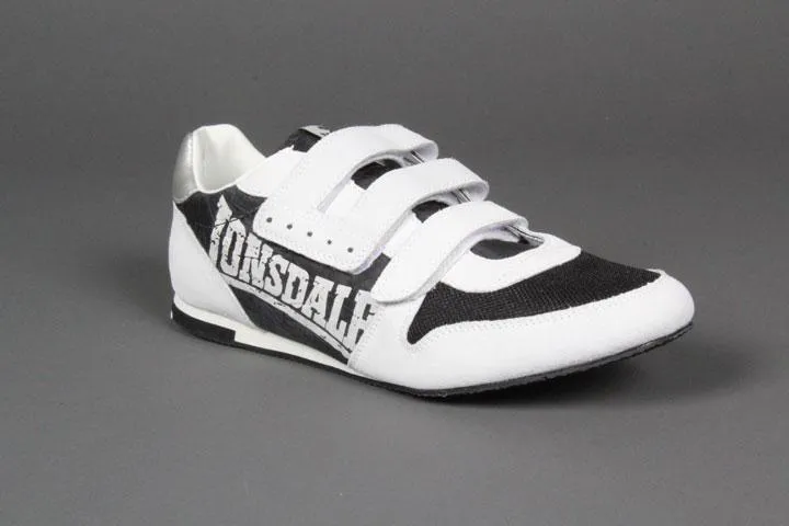 Stylish shoes from Lonsdale with 3 velcro closure and logo on the side. Men's, white/black, size 43, pair.