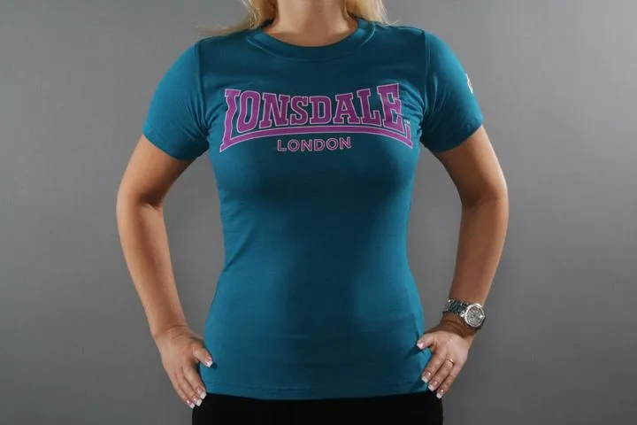 Classic short sleeve t-shirt with print on the chest. 95% cotton, 5% spandex. women's, Italy Blue, large.