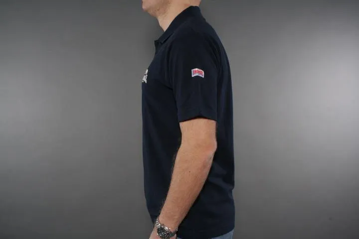 Classic polo shirt with embroidery on the chest and plaid fabric under the collar. 100% cotton. 210g/m2. Men, navy, XXL