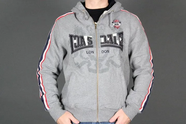 Slim fit hoodie with zipper, 100% cotton, Vintage application and emblem on the chest, Woven stripes on the sleeves, Waffle lining in the hood, Ribbed on the sides. Men's, gray, XXL.