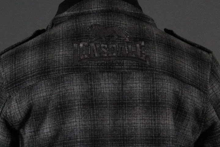 Lined jacket in a subtle plaid pattern with embroidery on the chest. Lonsdale + Lion embroidered at the top of the back. 4 front pockets + 2 inner pockets. Suitable as spring, fall and mild winter jacket. Outside: 40% cotton, 40% polyester, 20% viscose. Inside: 100% polyester. Lining: 100% polyester. Men's, gray, small.