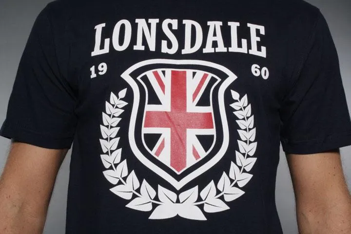 Slim fit t-shirt with a nice history leaves print on the chest. Small lion application at the bottom front. 100% cotton. Men's, navy, small.
