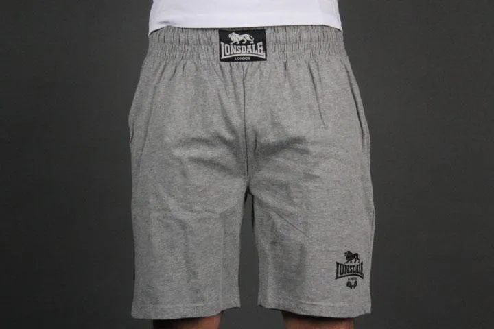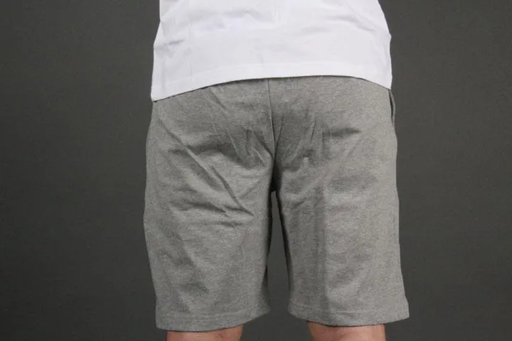Gray shorts with small print on one leg. 100% cotton. Men's, gray, large.