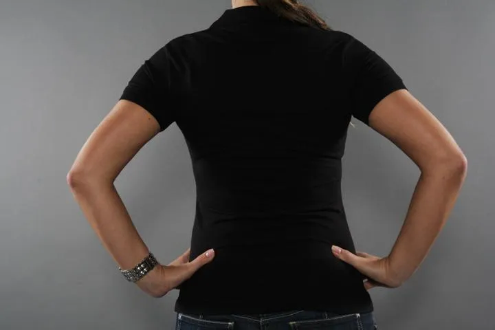Black polo shirt with small lion embroidered in black on the chest. 95% cotton, 5% elastane. Women, black, large.