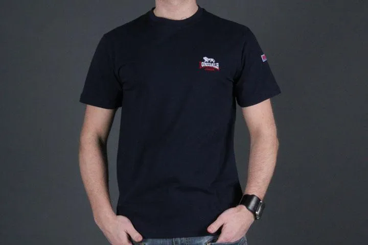 Men slim fit t-shirt, Super stretchy, 98% cotton 2% elastane, Regular size, Small lion and logo embroidery on chest. Navy, Small.