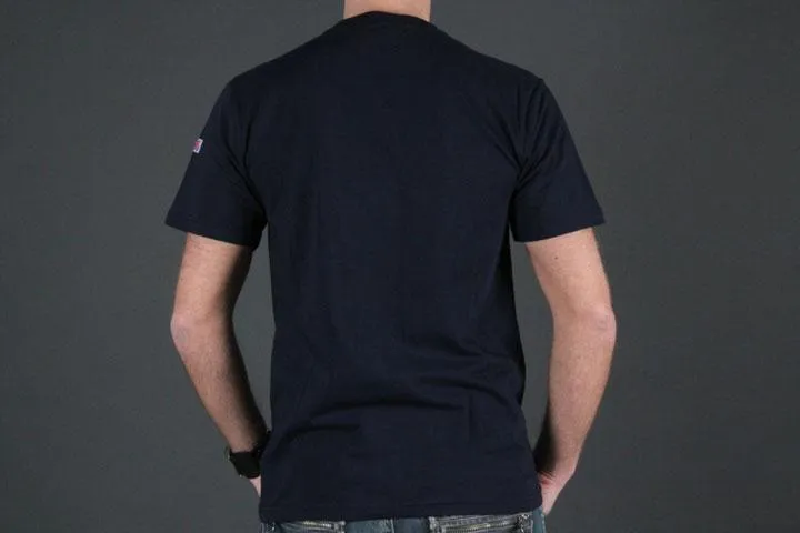 Men slim fit t-shirt, Super stretchy, 98% cotton 2% elastane, Regular size, Small lion and logo embroidery on chest. Navy, XXL.