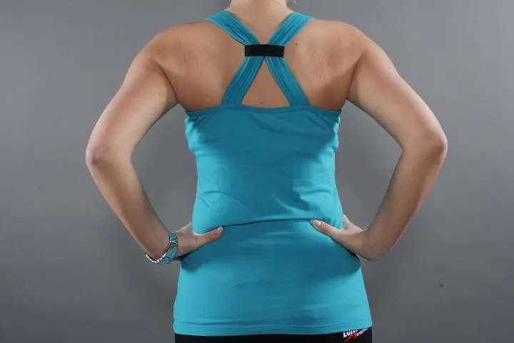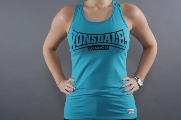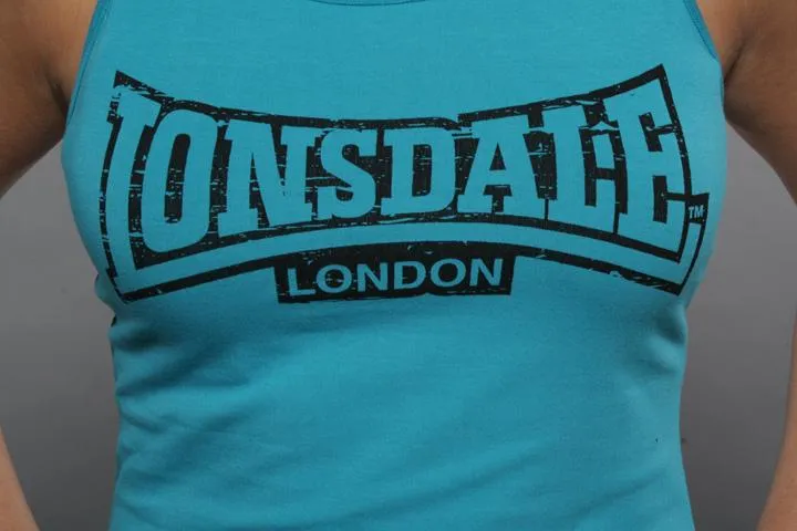Ladies singlet, Regular size, 95% cotton 5% elastane, Super stretchy material, Broken print on chest, soft to the touch, Training or summer top. Dam, Italy Blue, small.