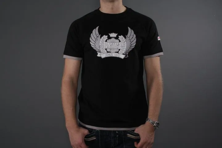 Short sleeve t-shirt with print on the chest (plastisol broken print), Material: 100% cotton. Men, black, XXL.