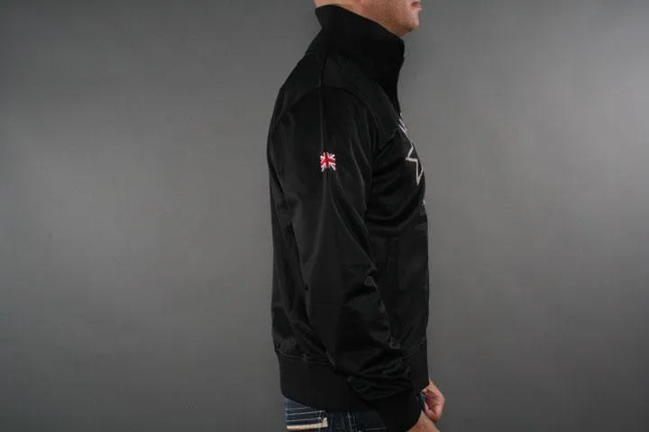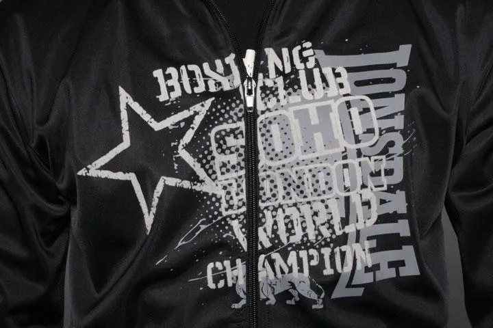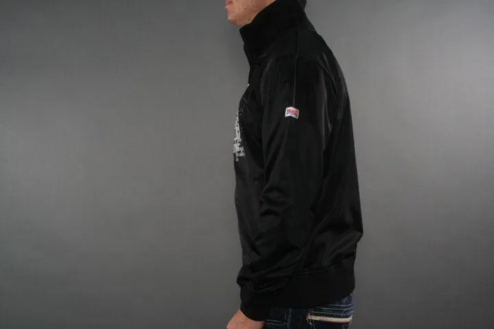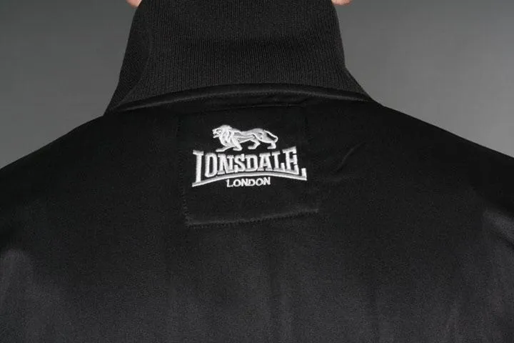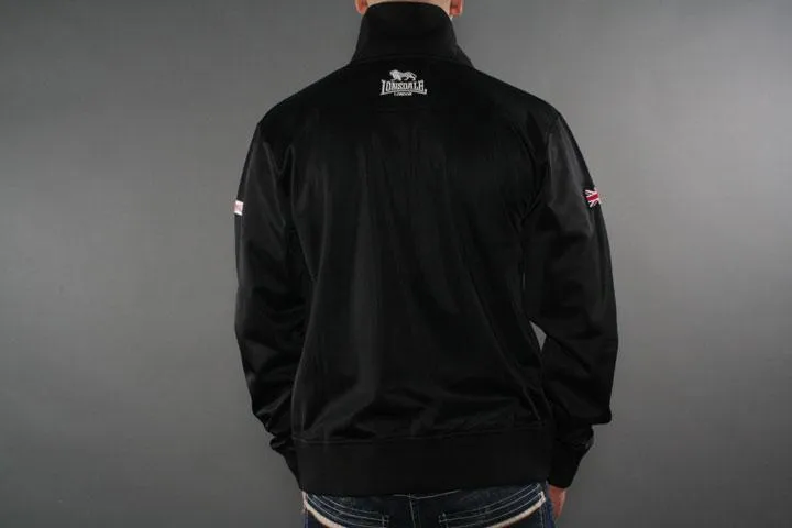 Classic zip up with trendy print on the chest. Flag and Lonsdale logo on the sleeves. Lonsdale logo embroidered high up on the back. Material: 100% polyester tricot fleece. 240g/m2. Black color. Size XXL.