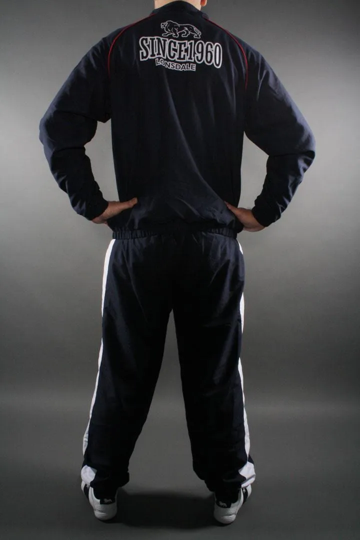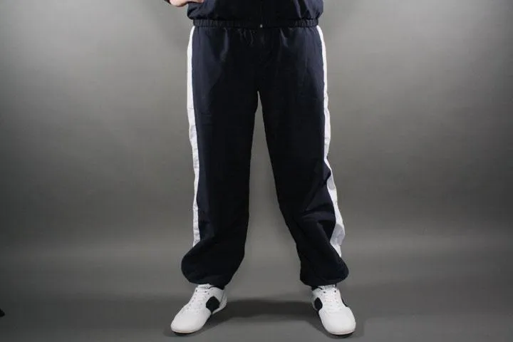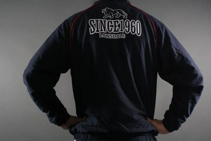 Navy blue pants with side rips and pockets. Small embroidered Lonsdale logo. 100% nylon
