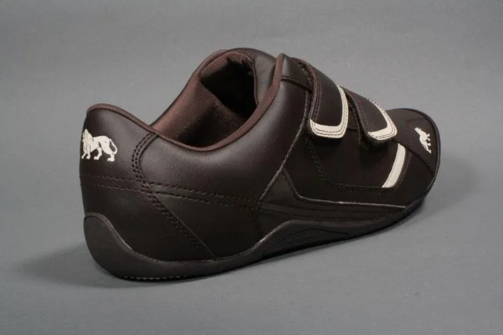 Men shoes, 100% leather, Textile lining, Chocolate color, 2 touch straps, Pressed in lion and logo printings, Perforated toe. Men's, brown, 41, pair.