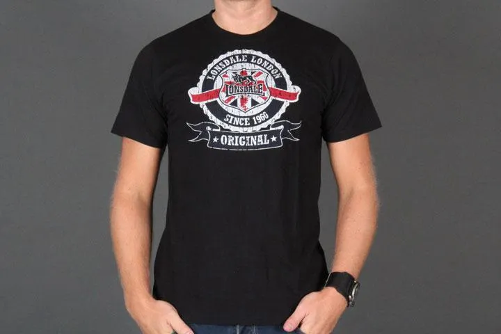 Soft stretchy t-shirt for men, Slim fit, Vintage soft “ragged” print, 67% cotton 33% polyester, Regular size, Men, black, small.