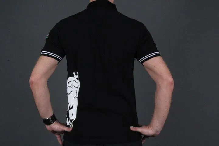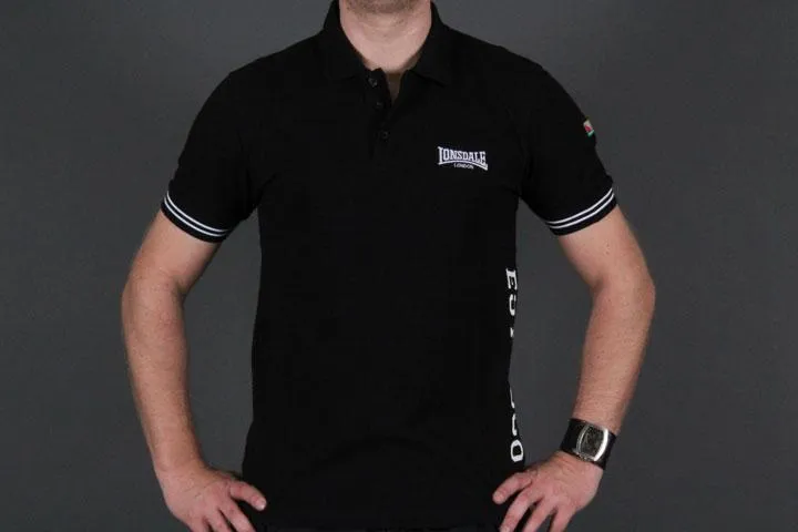 Polo Piqué with small logo on the chest and lion printed on the side. 100% cotton. Black/white, medium.