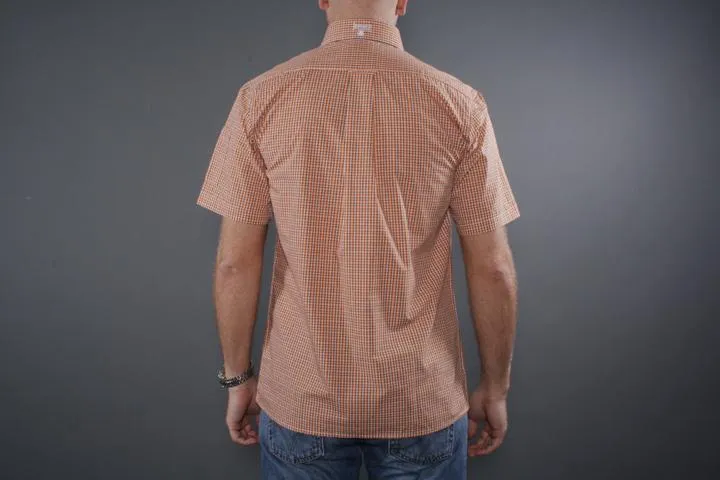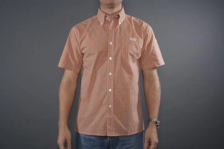Short sleeve shirt with embroidered Lonsdale logo on the chest pocket and back collar.55% cotton/45% polyester. Men's, 8345 Orange, large.