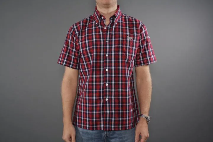 Short sleeve shirt with embroidered Lonsdale logo on the chest pocket and back collar.55% cotton/45% polyester. Men's, 8354 blue, XXL.