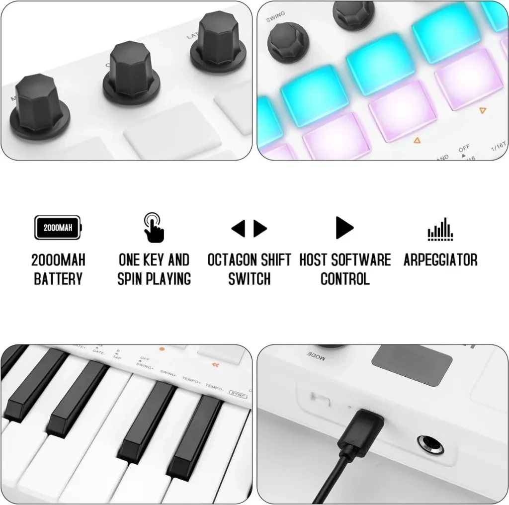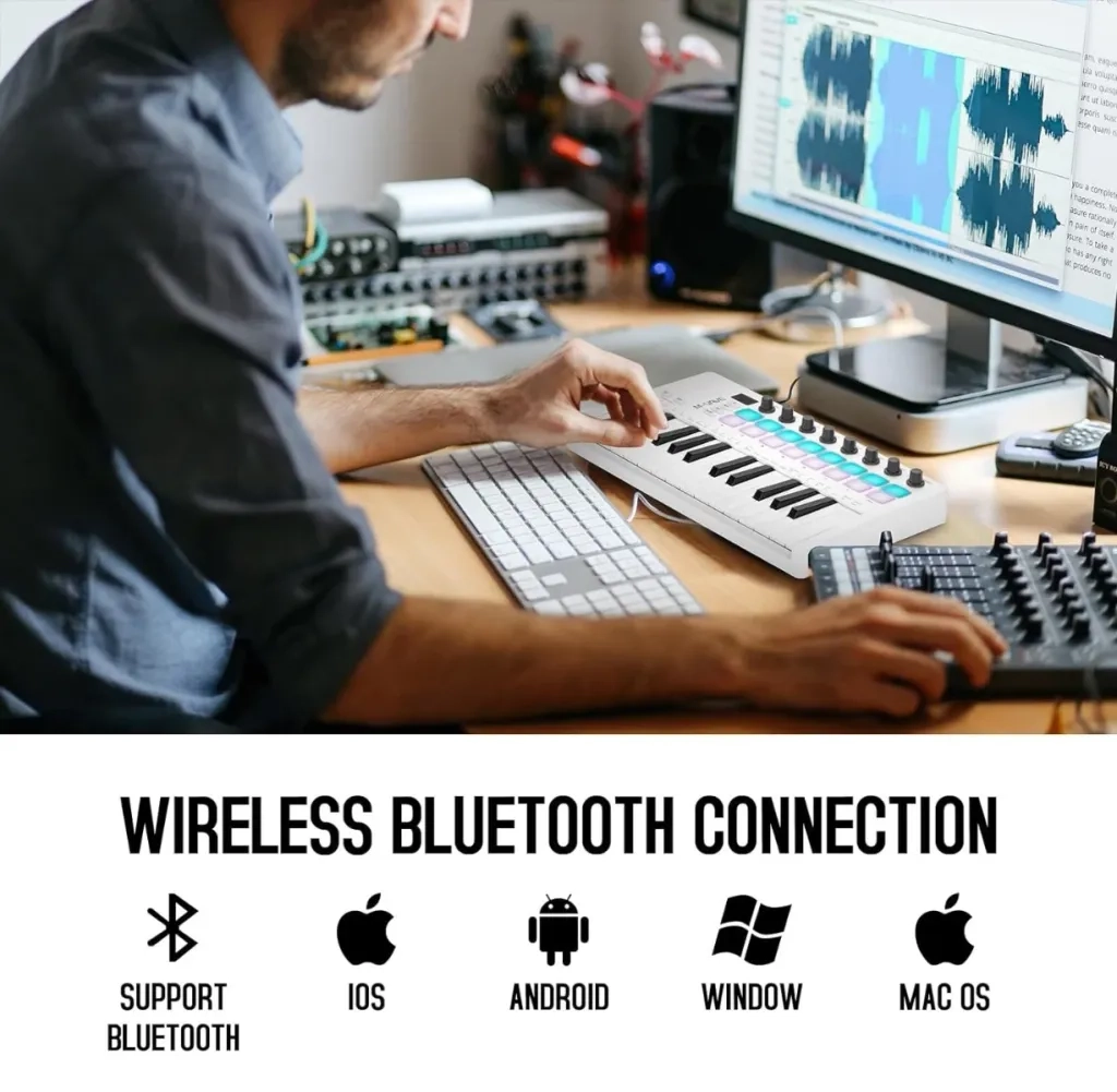 The M-Vave 25 Key mkII is an efficient and easy-to-use controller for songwriters, beat makers and DJs, who can use it for both music production and live performance. It is compatible with all common operating systems and music production software (DAW), and it can be connected with USB and bluetooth.