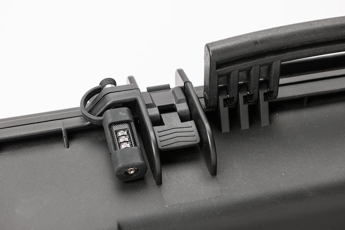 Two integrated hasps to secure case with a padlock