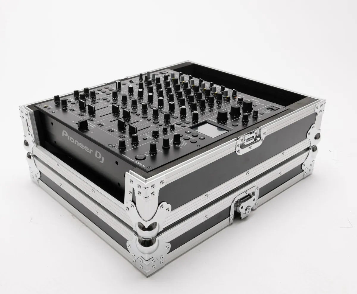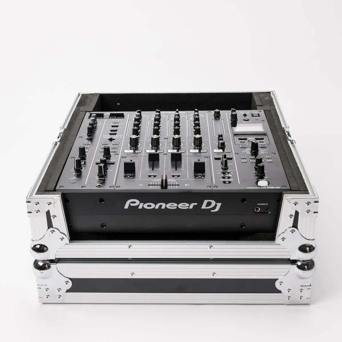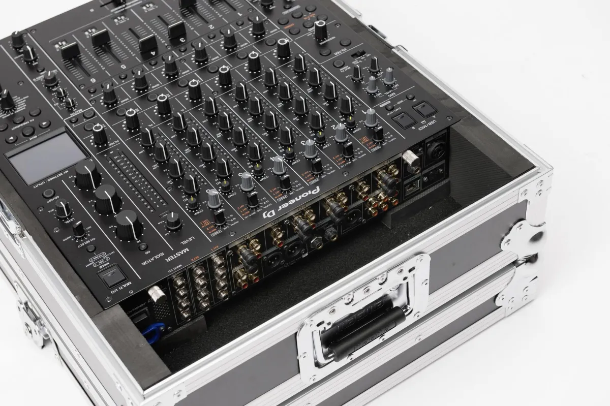 Custom designed to accomodate a Pioneer DJM-V10 or DJM-A9 club-mixer. The included foam-set provide a snug fit for the slightly smaller DJM-A9 mixer. Crafted from 9 mm vinyl laminated plywood, sturdy aluminum profiles and heavy duty butterfly latches this case provides ultimate protection for mobile use on the road.