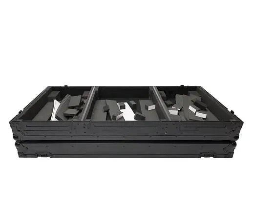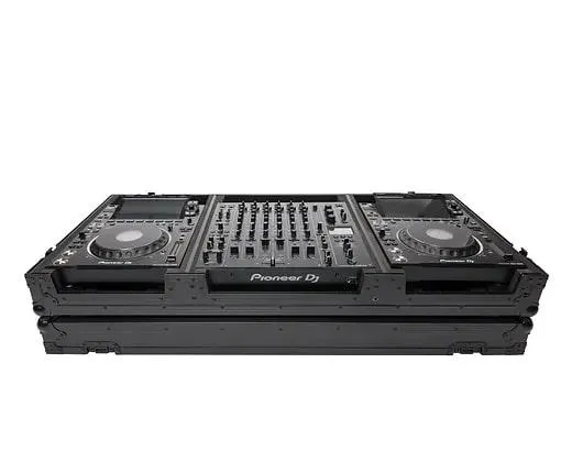 The new MULTI-FORMAT CASE PLAYER/MIXER (V10/A9) SET is specifically designed for transporting two CDJ/Multimedia Players and a 6 or 4-channel club mixer, such as the Pioneer DJM-V10, DJM-A9, or Ecler Warm 4. The case is universally compatible with all current models from Pioneer DJ, Denon, Allen & Heath, Ecler, Rane and Reloop, and can be adjusted to different device sizes using the included foam strips. Crafted from 9 mm vinyl laminated plywood, sturdy aluminum profiles, heavy duty butterfly latches and smooth rolling wheels, this case provides ultimate protection for mobile use on the road.
