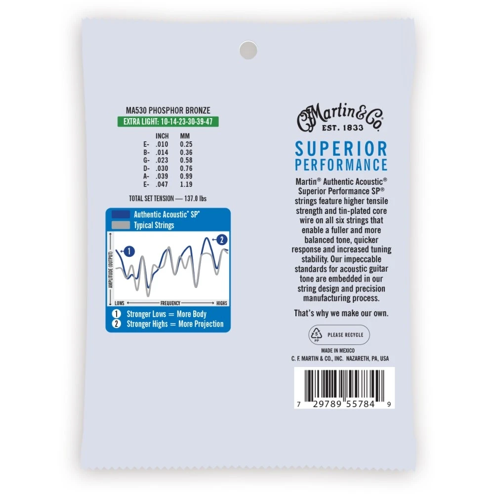Martin Guitar Authentic Acoustic Superior Performance 92/8 Phosphor Bronze - Extra Light MA530