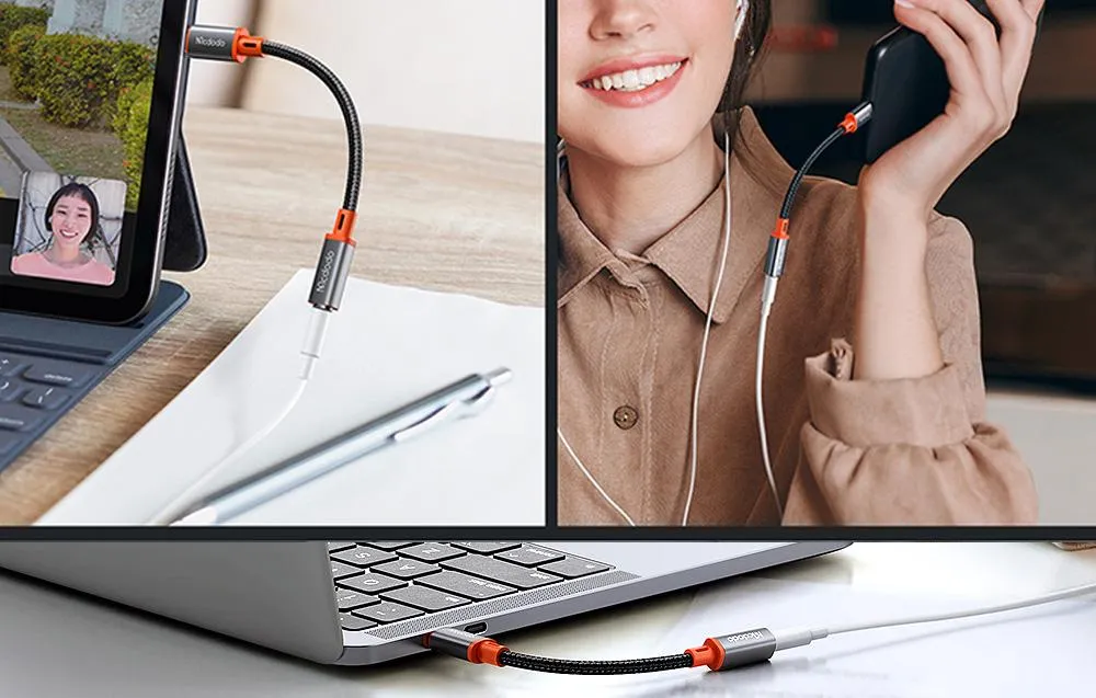The audio adapter by Mcdodo is 11 cm long, so you can easily carry it in your purse or backpack and always have it with you. The built-in chip provides crystal clear sound. Unhindered listen to music, play games and make phone calls anywhere! What's more, you can easily change the song and adjust the volume level. The product has passed many endurance tests and stands out for its solid construction.